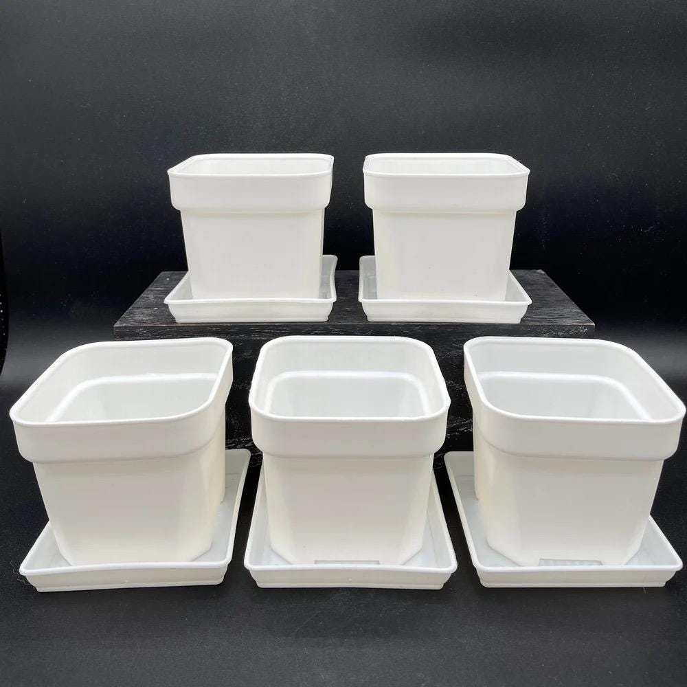Small and classic design, the white plastic pots for plants, 3 inches in height, 3 inches in outer diameter, 3 inches in bottom diameter. And the squared shape is modern and classic that is a perfect gift for home décor.